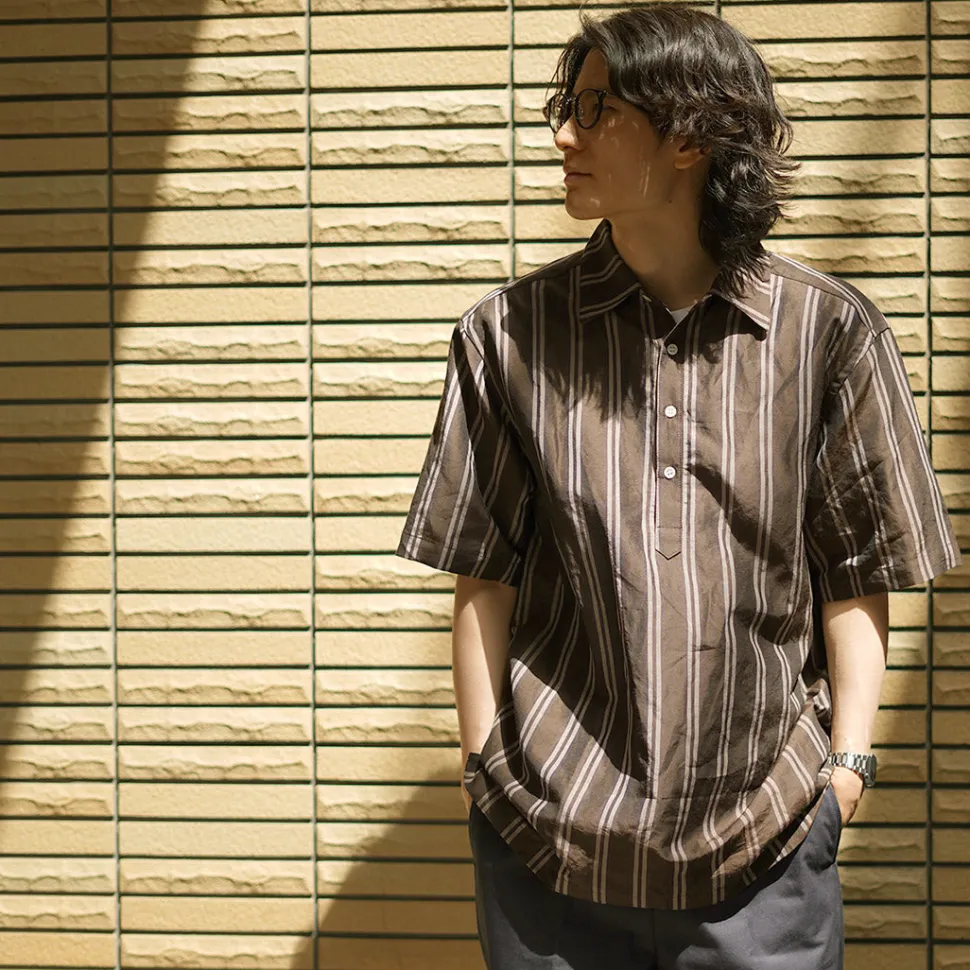 While it is comfortable and easy to wear, it is not too casual with its calm colors, and the wide spread collar pulls the whole look together. It is a gem that adds smartness to your fashion in the sweaty season when you want to spend your time comfortably.
