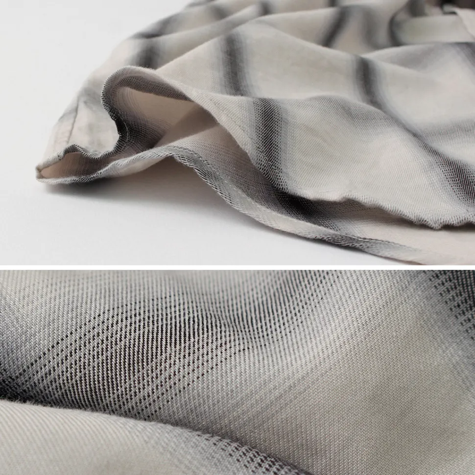 This one is made of 100% Giza cotton fabric with a supple and elegant sheen. The smooth gradation check pattern is attractive, and the pattern, which has a strong image of fall and winter, is expressed in a thin fabric that is easy to wear in spring and summer, making it a bold piece of clothing.