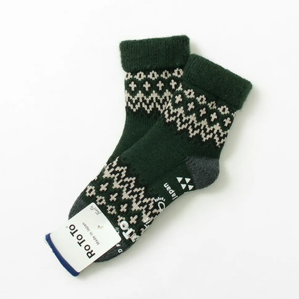 These thick, low-gauge room socks were developed using knitting machines that produce a variety of work socks, including fisherman’s socks. The softly wrapped comfort makes them a recommended item for nights when you want to rest your tired feet after a hard day’s work, or as room socks on holidays when you want to relax.