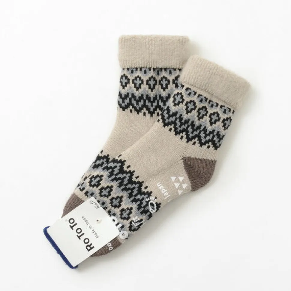 Low-gauge room socks with a thicker wall thickness, developed using knitting machines that knit a variety of work socks, including fisherman’s socks.