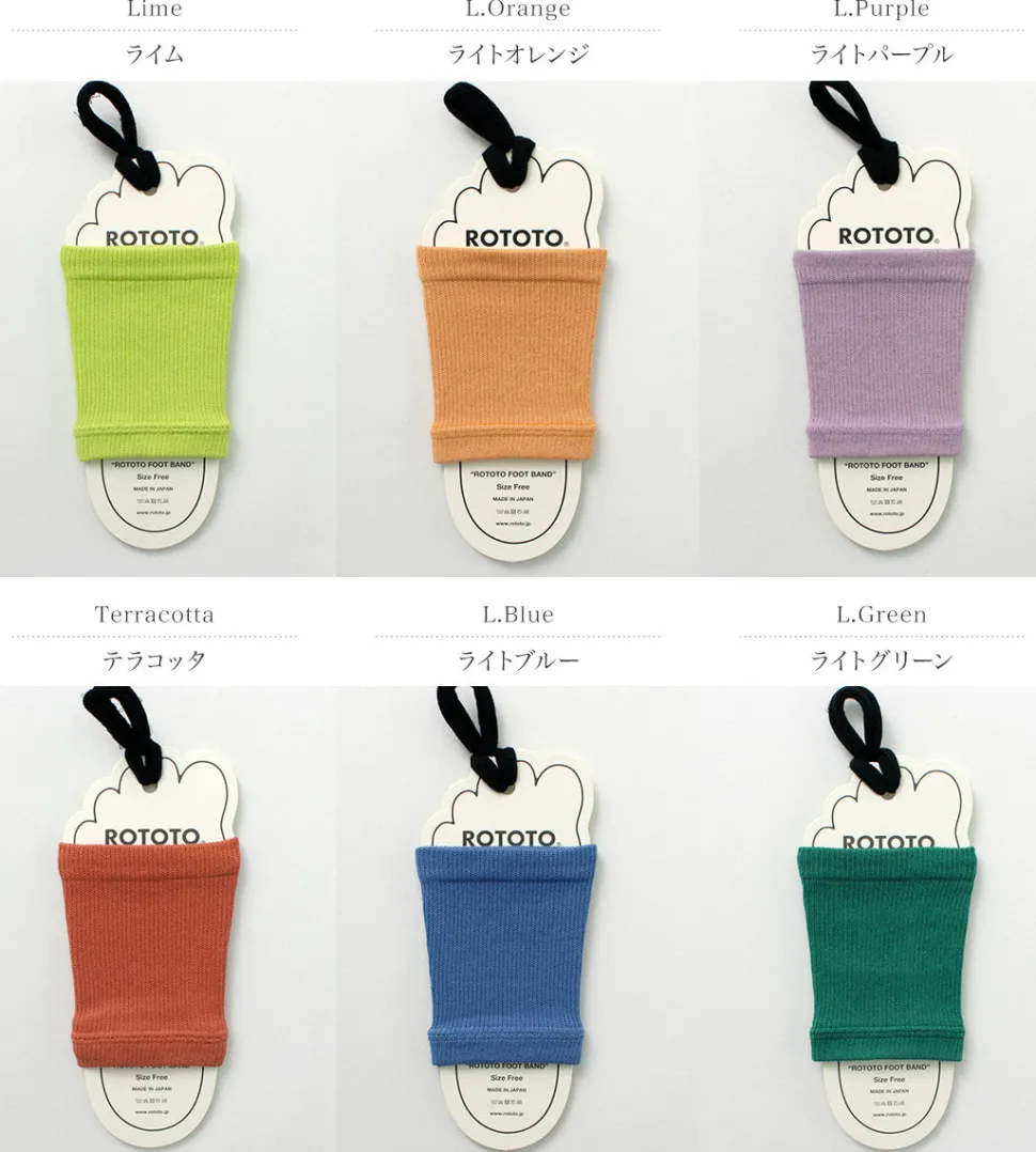 ROTOTO’s foot bands make it comfortable to wear sandals, an essential summer accessory. The item is designed to address problems associated with wearing sandals barefoot, such as sticky soles due to perspiration, odor when worn barefoot, and pain when the straps touch the back of the foot.
