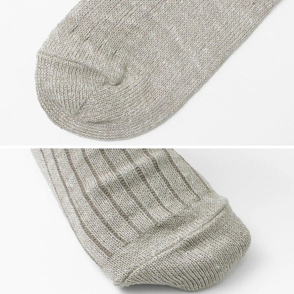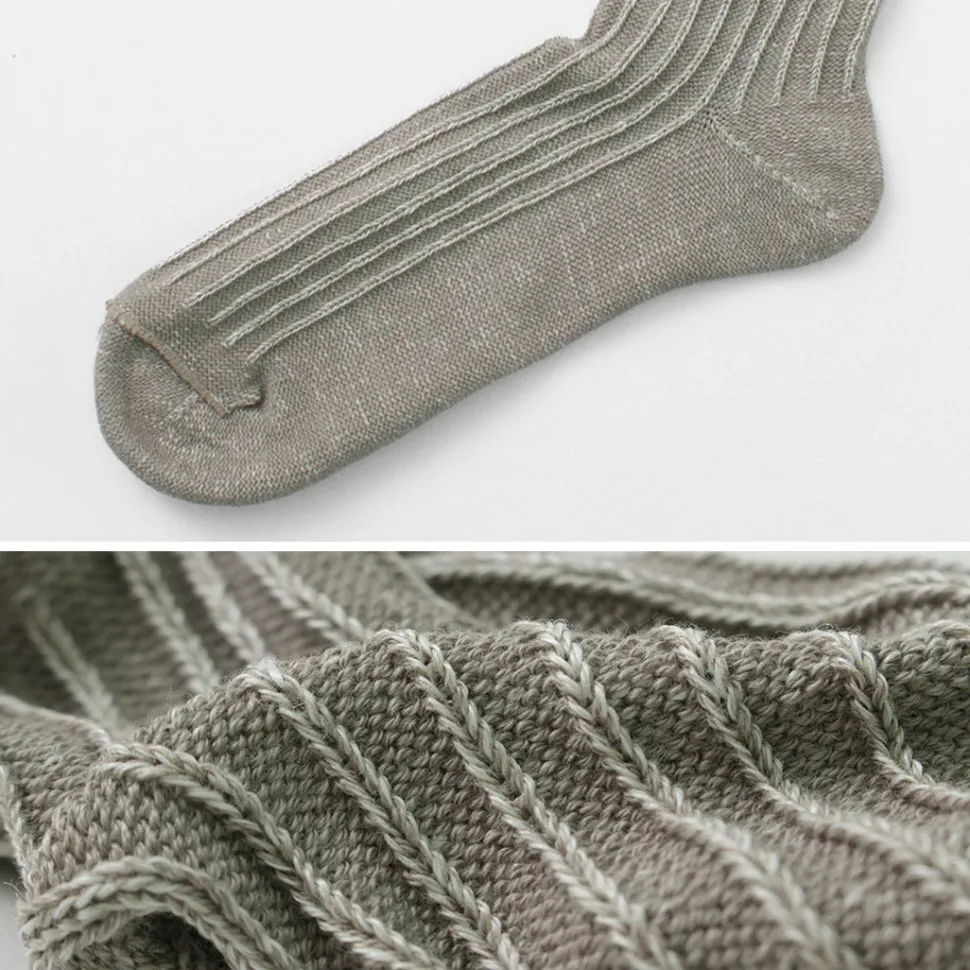 The inner cotton absorbs perspiration and dampness, while the linen knitted on the outside dissipates perspiration, dampness, and heat. These socks are made with natural fibers that provide functionality and an excellent sense of coolness.