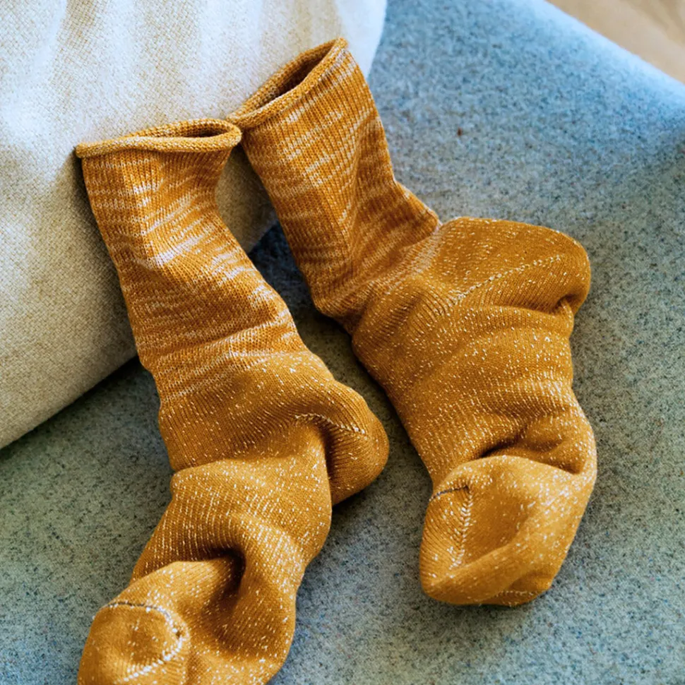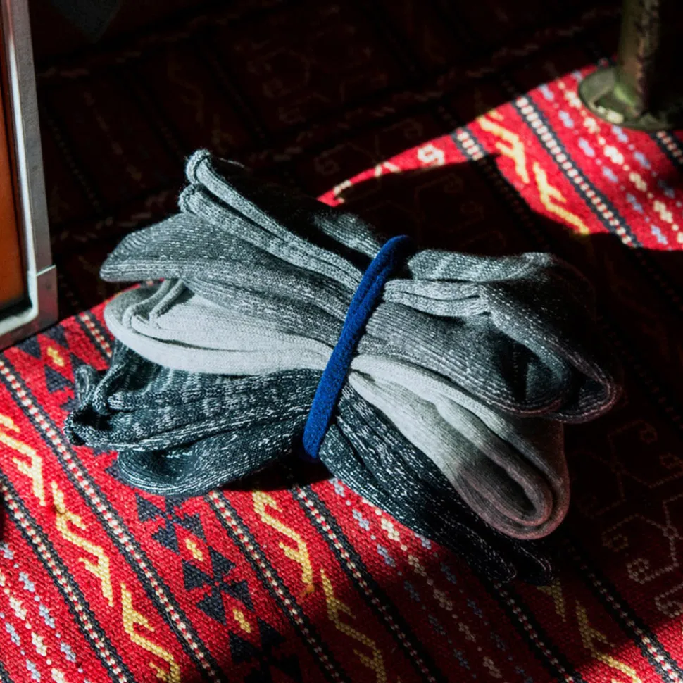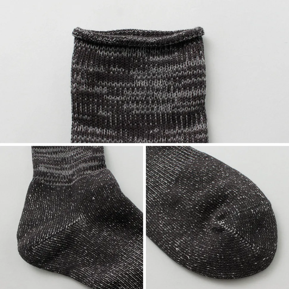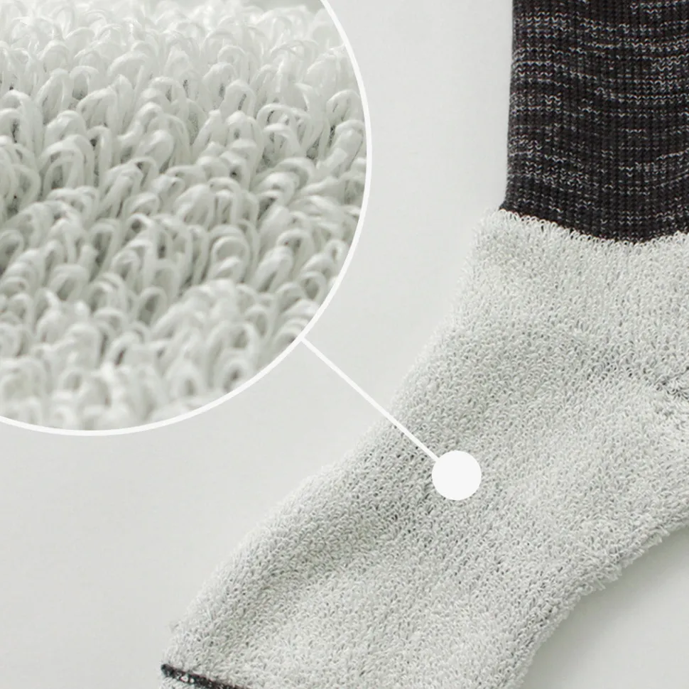 These socks have a unique crisp feel, created by knitting Japanese paper yarn into a pile. It is difficult to pile knit resilient Japanese paper yarns on ordinary knitting machines, but the special knitting machine and excellent Japanese craftsmanship make these socks a special pair that no one else in the world can imitate.