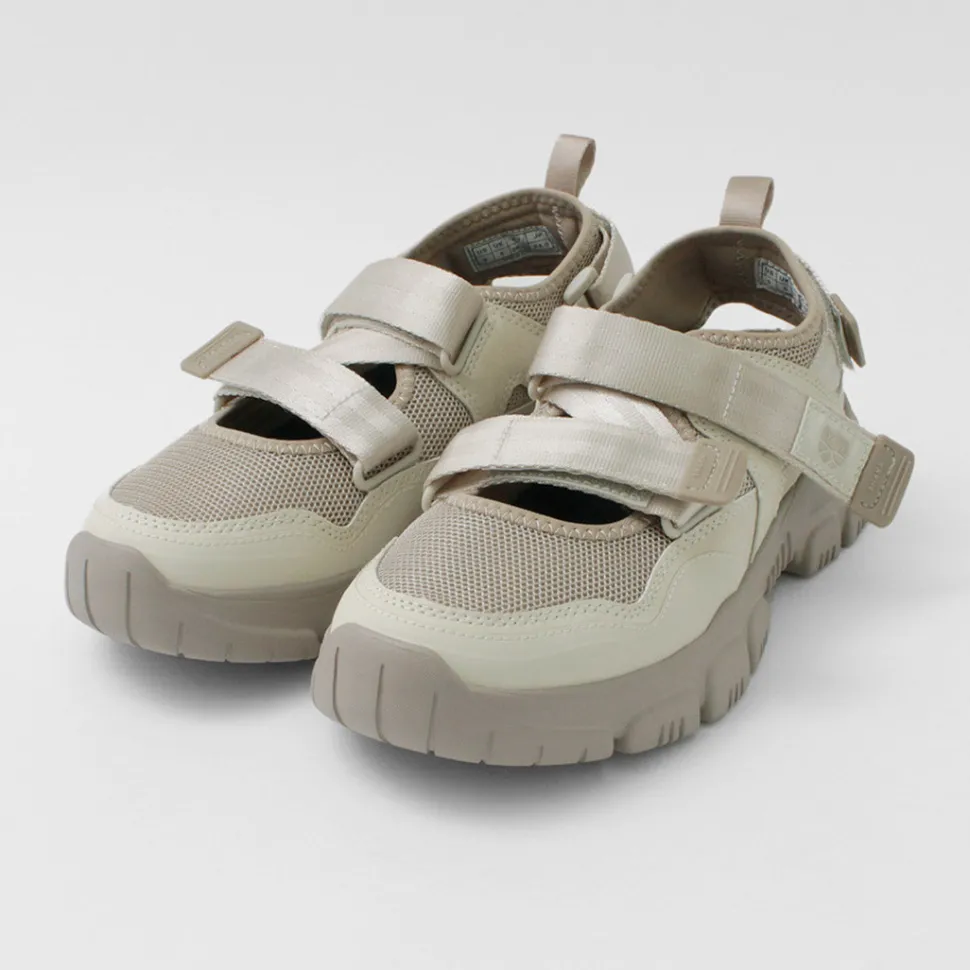 The upper is made of breathable mesh material. The Velcro adjuster, which allows you to freely adjust the fit, not only looks unique, but also holds the instep firmly in place and provides a stable and comfortable fit.