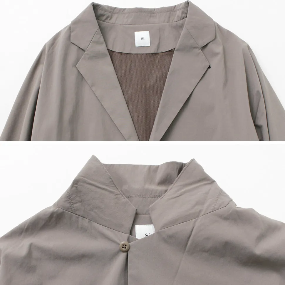 The fabric is made of a high-functional material supervised by the Italian company LIMONTA, which is said to be the world’s highest peak in synthetic fiber outerwear. The crisp, cotton-like feel on the skin is appealing, and the matte luster gives it an elegant look.