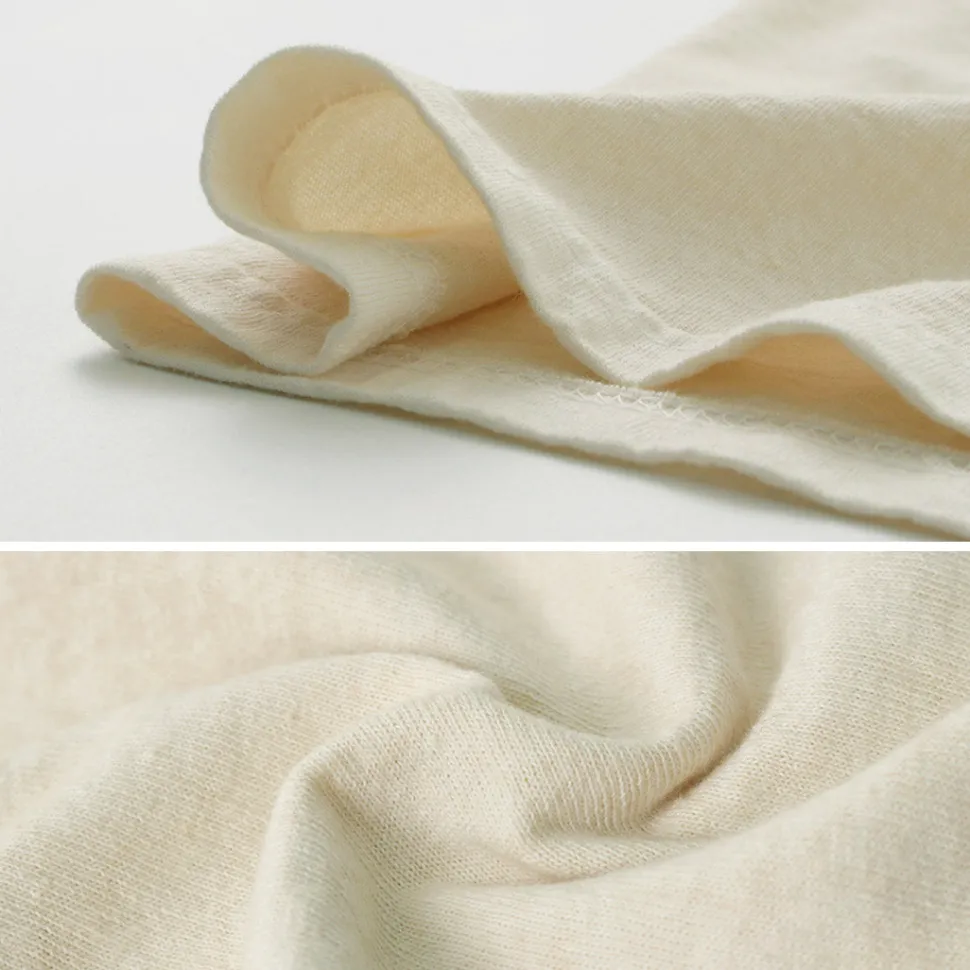 Utilizes 100% American cotton yarn (18 single yarn). The fabric is a jersey material that is comfortable and durable, with good stretch and a thickness that naturally conforms to the skin.