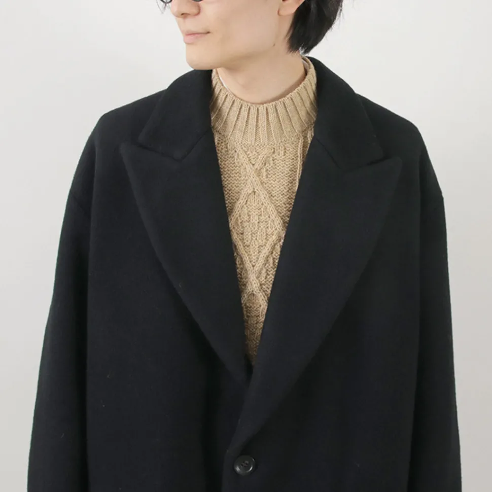 The fabric is made of wool beaver fabric with a soft feel and elegant look. The peaked lapel with a mature atmosphere is arranged in a large size and tailored in an oversized silhouette, creating a unique piece that is not only elegant, but also unique to the brand.