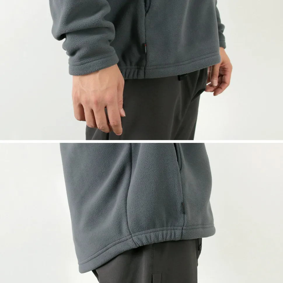 The fabric is made of POLARTEC MicroSeries Fleece. The surface is shirred and brushed to create a layer of air within the fabric, making it lightweight, yet warm and comfortable to wear.