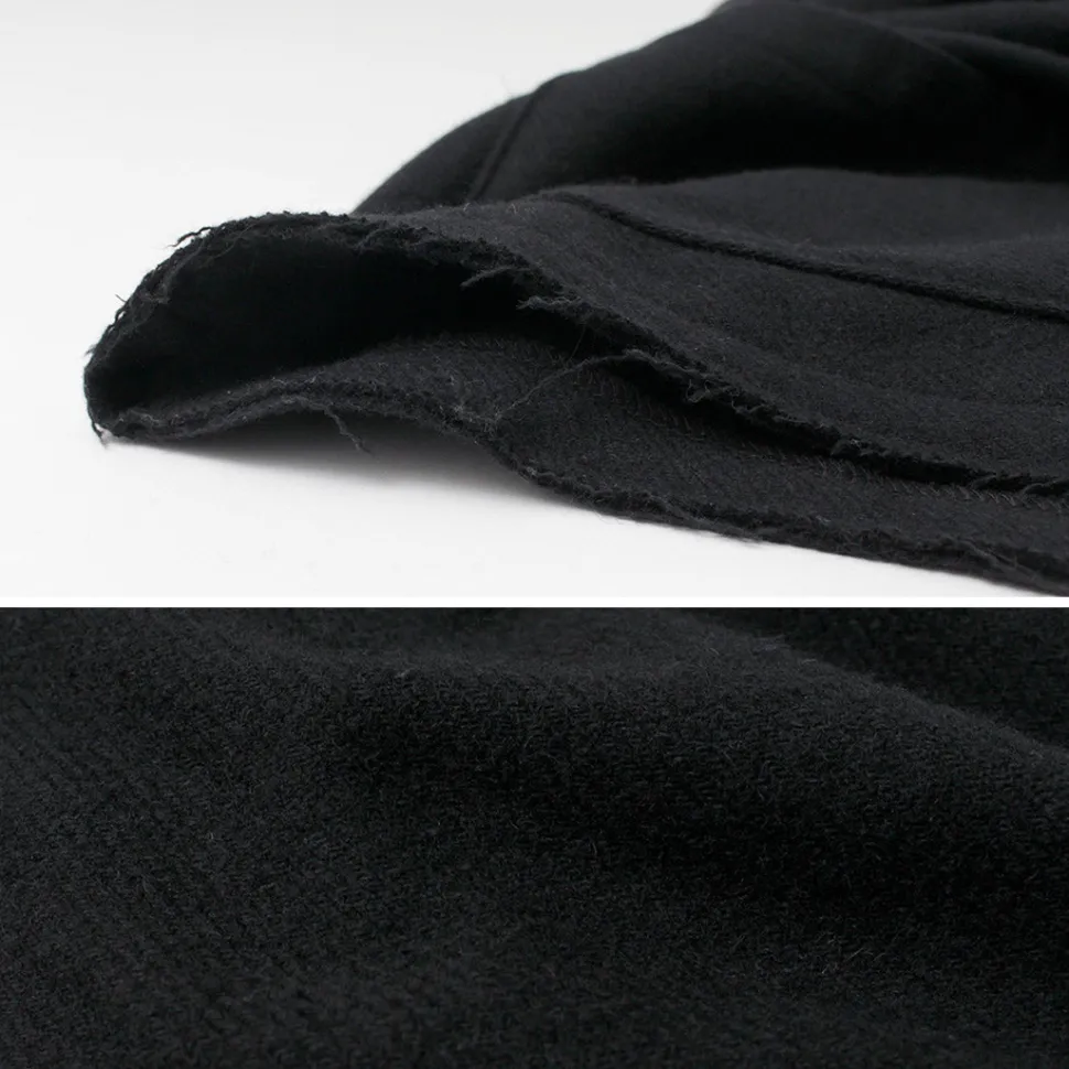 The raised surface on the reverse side eliminates the prickliness characteristic of wool, and the fabric is finished to feel smooth against the skin.