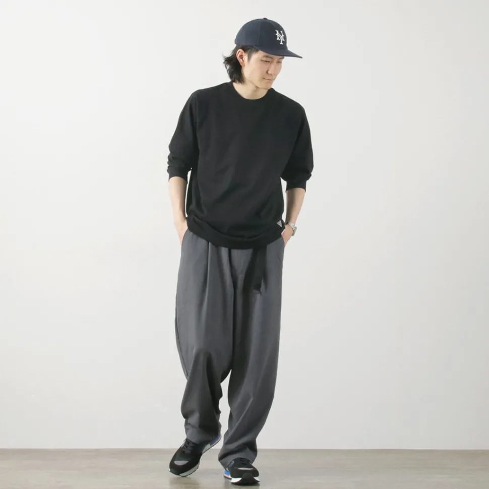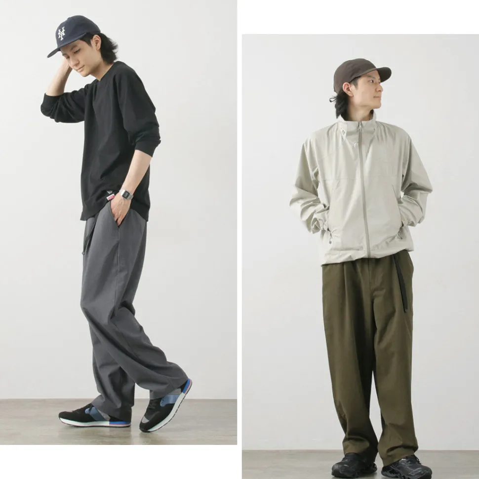 These easy pants have a crisp, dry hemp-like feel that is refreshing. The functional fabric with excellent air permeability and UV blocking functionality provides a comfortable fit even during the sweaty season.