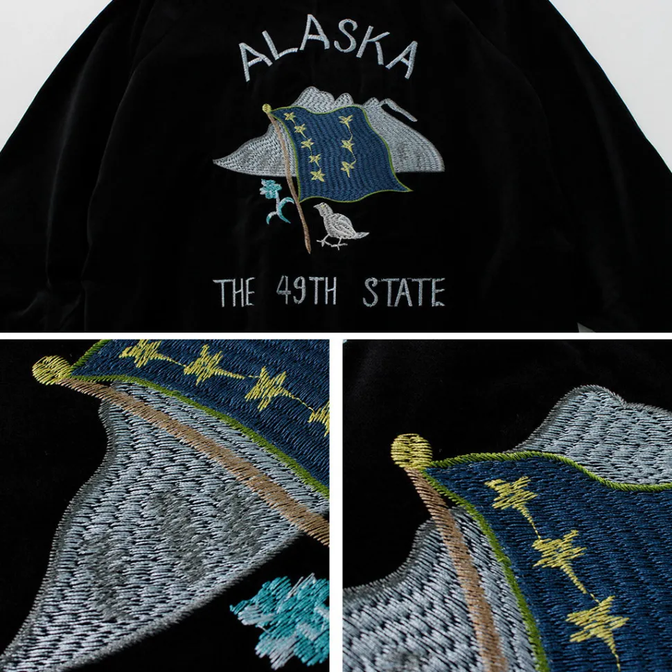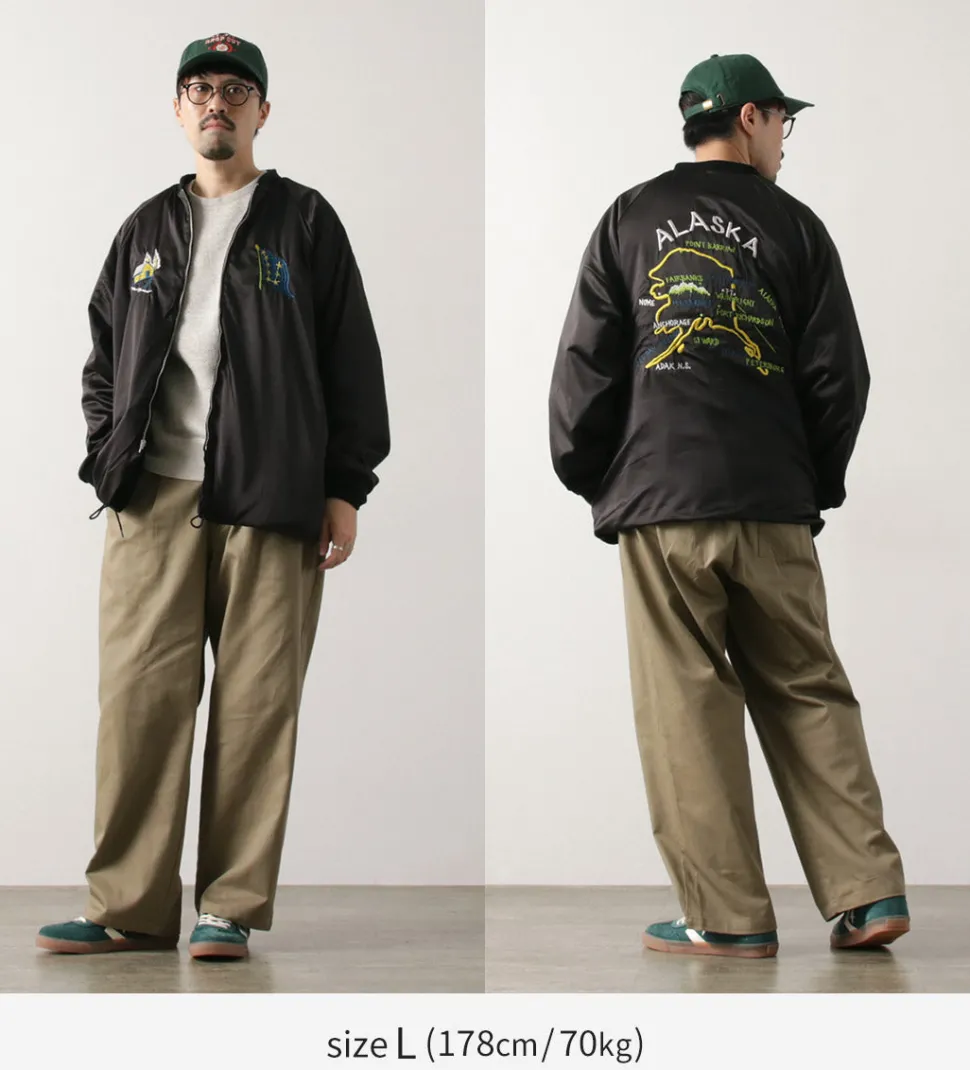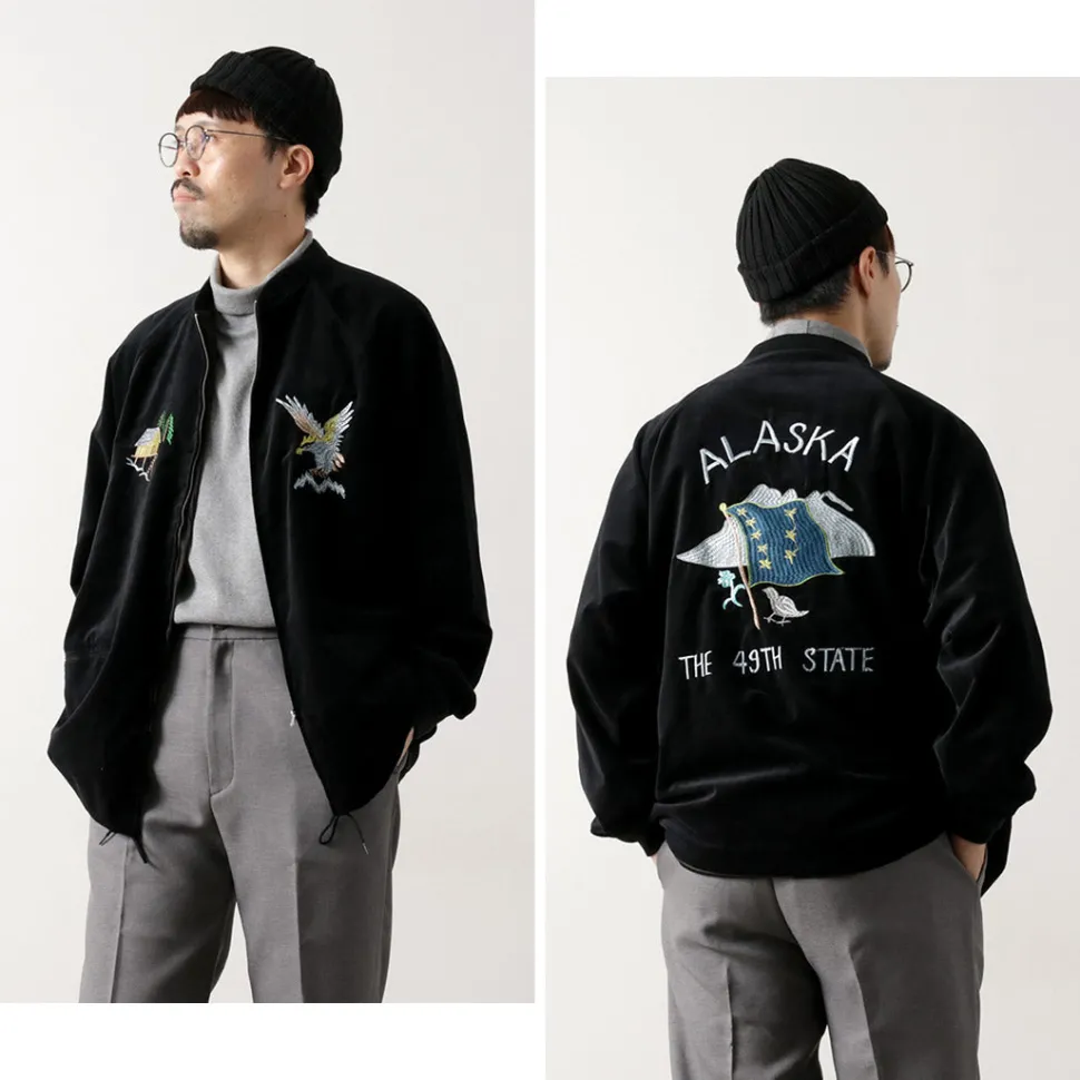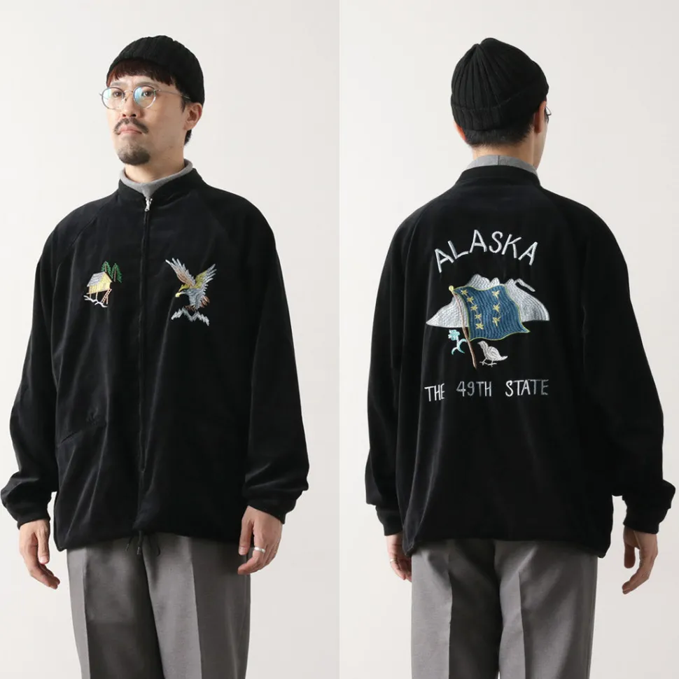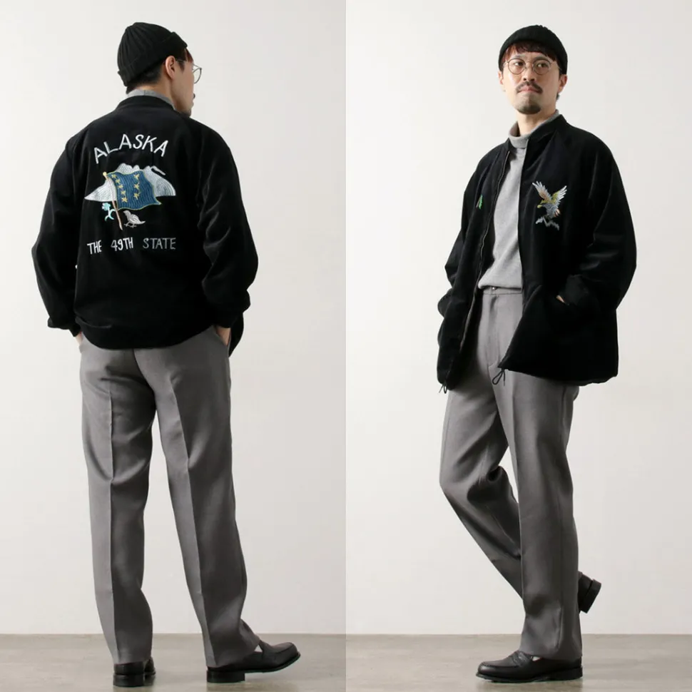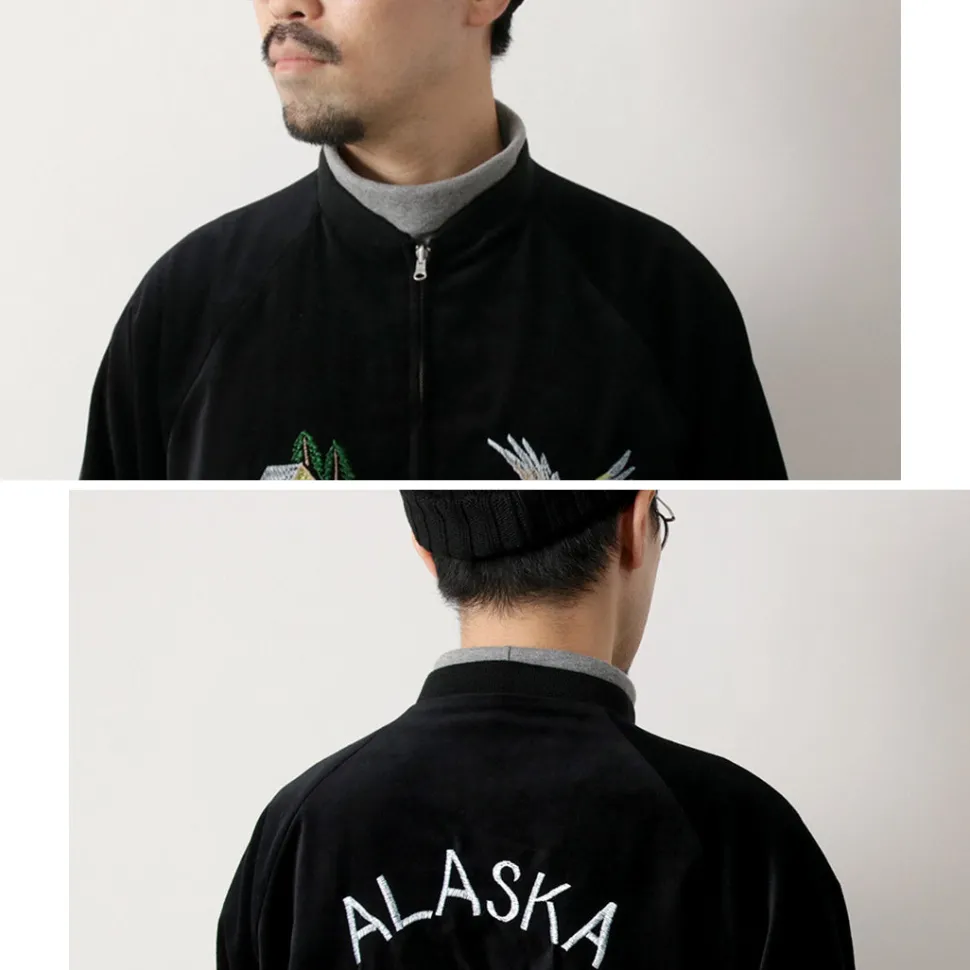 The standout feature is the carefully reproduced embroidery made with glossy fine threads. The Alaska pattern, which is difficult to find in vintage clothing, is vibrantly expressed using modern technology.