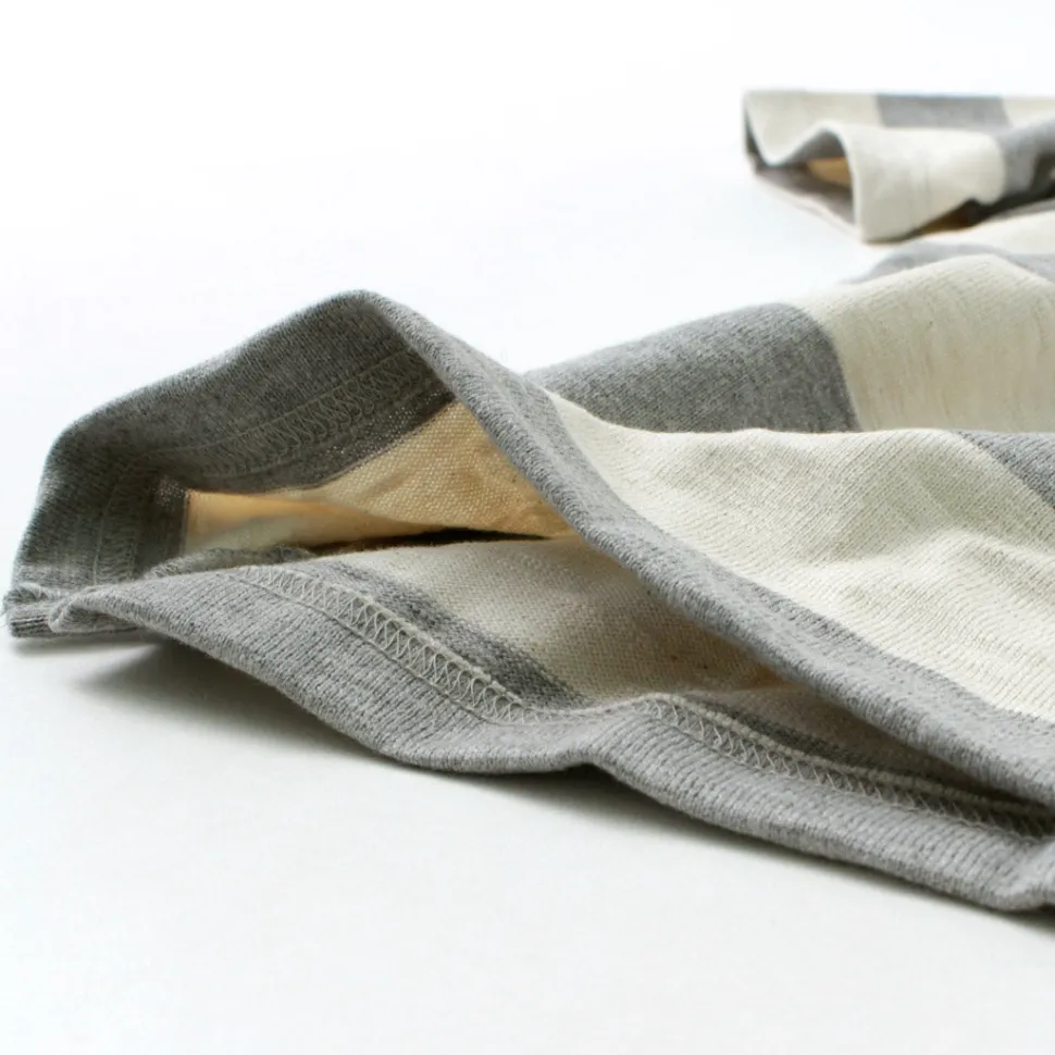 The slub yarn made from organic cotton at a spinning mill in Japan has a unique uneven look, and offers excellent breathability and warmth retention. Comfortable and non-sticky in spring and summer, and warm in autumn and winter when used as an inner layer, this fabric is “comfortable any time of the year”.