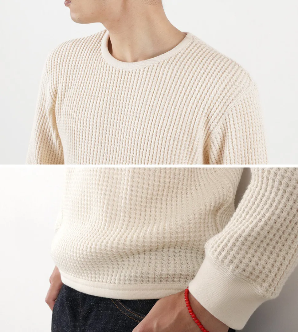 Introducing TIEASY’s Super Thermal Crew Neck T-shirt. As the name suggests, this cotton thermal fabric has volume and can be enjoyed as an inner layer in winter and as a single piece in spring and fall. This original thermal has high potential as a fashion item, combining the comfort of a sweatshirt with the feel of a knit.