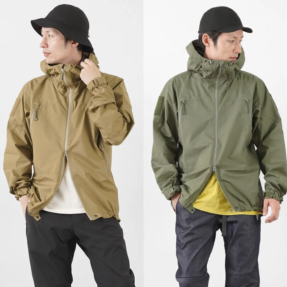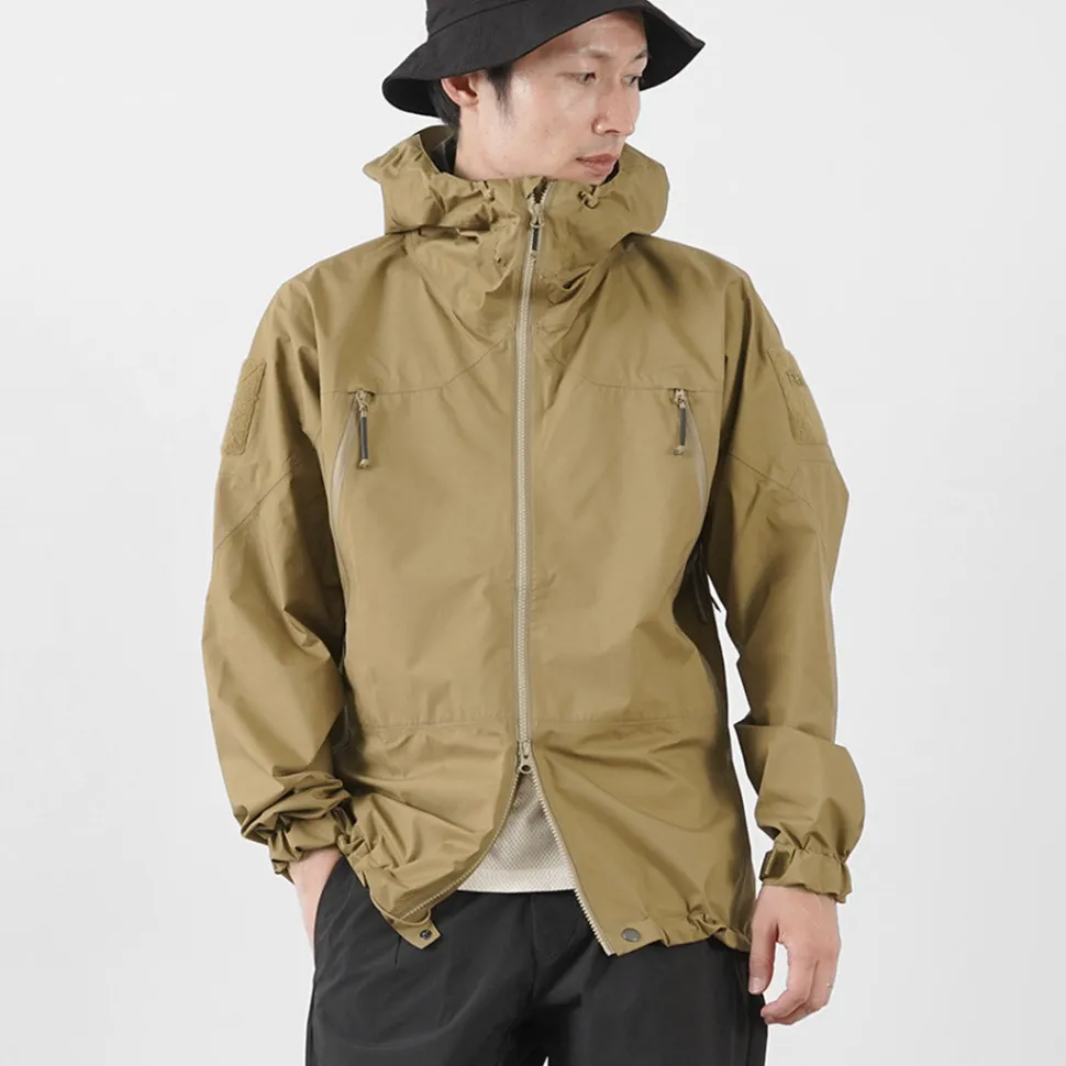 The fabric is made of GORE-TEX PACLITE PLUS, which is highly abrasion resistant and durable. The fabric is characterized by its thin and lightweight feel, providing a lightweight and comfortable fit without bulkiness.