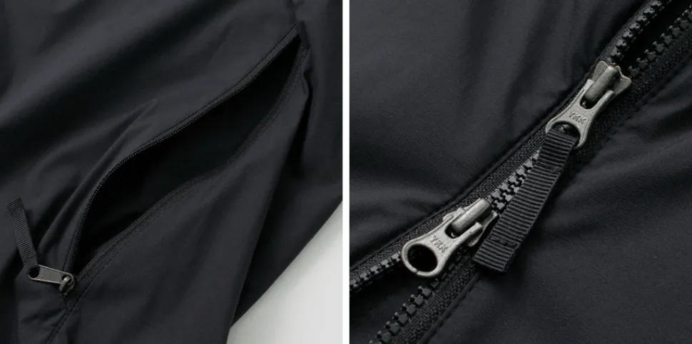 The front has a W-zip design that adjusts the silhouette and also functions as ventilation. Both sides have hand pockets that are easy to insert.