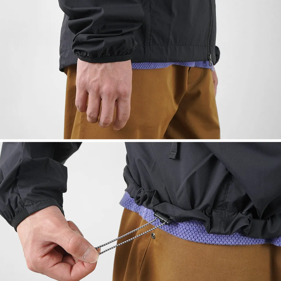 The left pocket can be turned inside out to make it packable into the palm of your hand. It can be used as a windbreaker or rain jacket to cope with sudden wind or rain on the go.