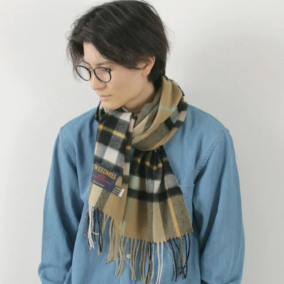 The richly colored check scarf adds a touch of color to simple coordinates. It is a luxurious piece that allows you to fully experience the rich charm of the historic tartan check.