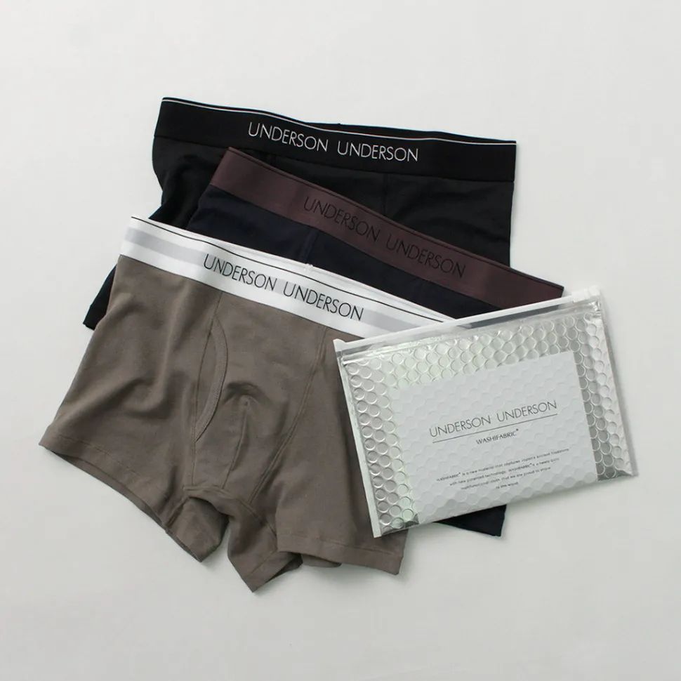 UNDERSON UNDERSON introduces the brand’s iconic regular short boxers with front opening made of Japanese paper.