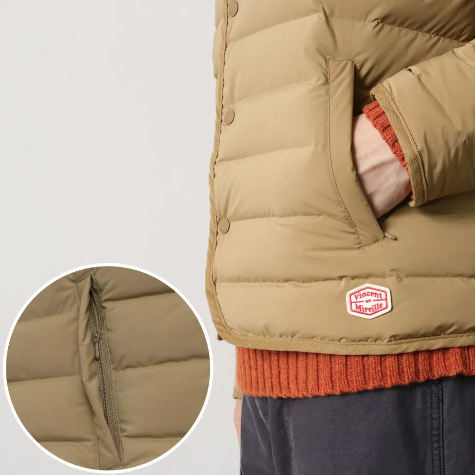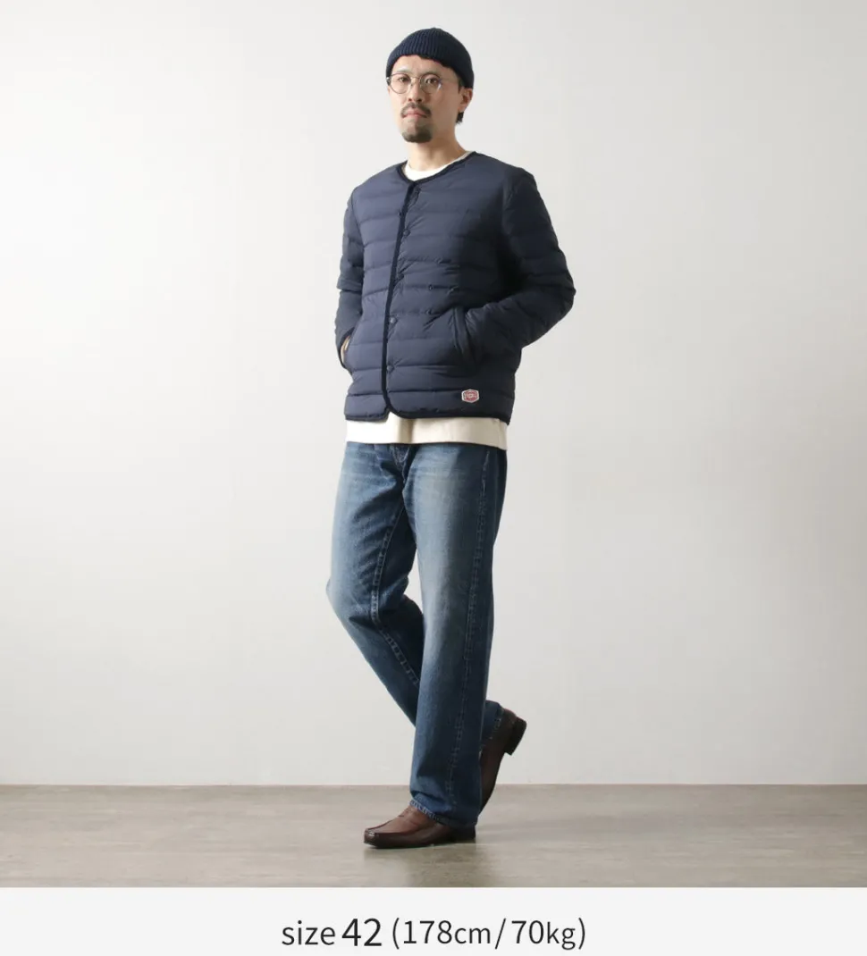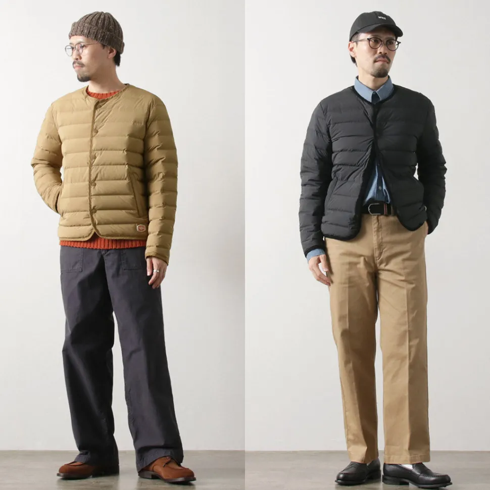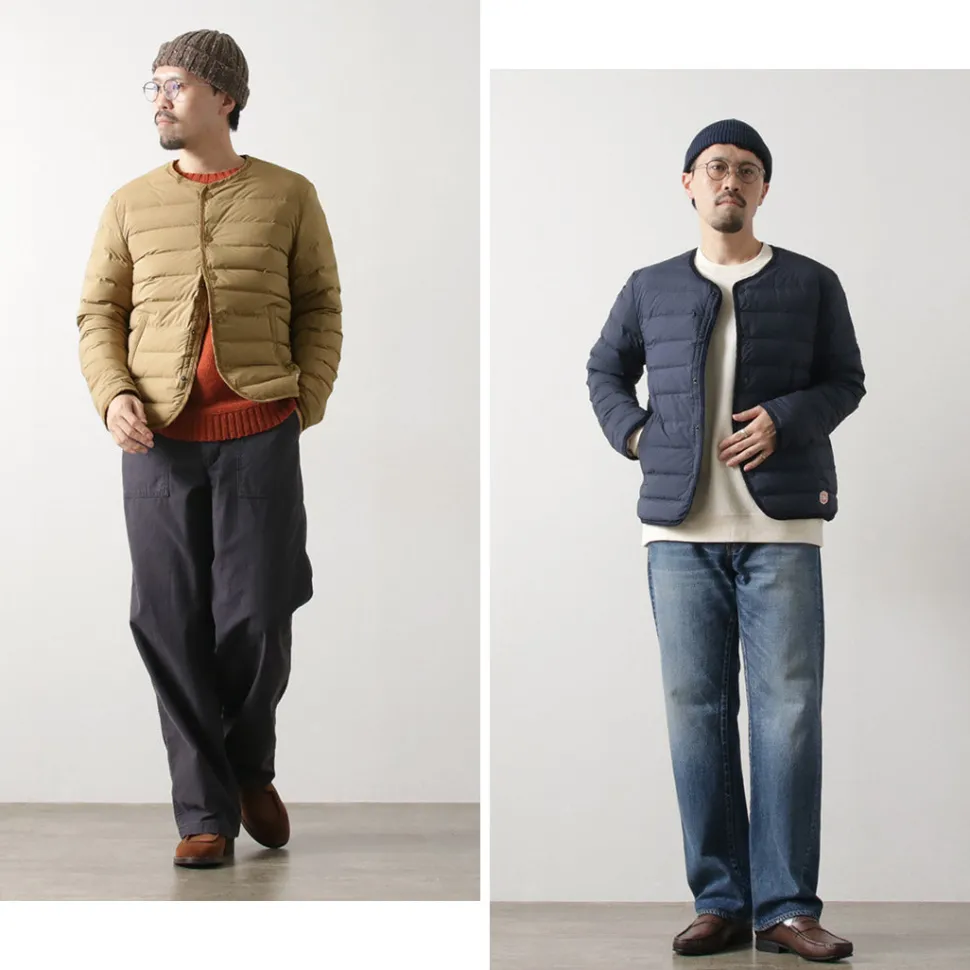 A slim-fitting, smart down cardigan that won’t make you look bulky, in the style of the French workwear brand “VINCENT ET MIREILLE”. Recommended for those who don’t want to look bulky or who want a light, comfortable down jacket.