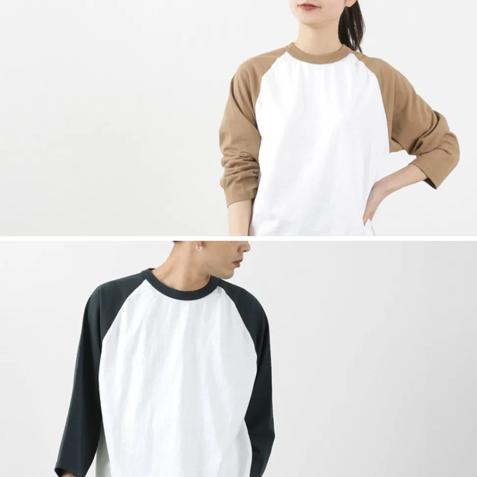 This baseball T-shirt is a WALLA WALLA SPORT masterpiece. The simplicity of the design makes it easy to wear, and the design makes it look great as a single piece. The fabric is made in the U.S.A. and sewn in Japan, making it both rough and durable. The wide range of sizes makes it suitable for both men and women.