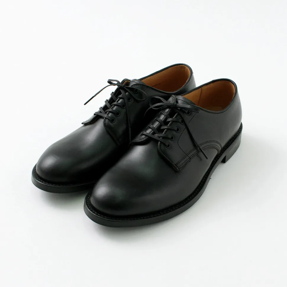 Derby shoes produced using a wooden pattern (#1228) based on the orthopedic shoe pattern produced by specialized technicians for the purpose of assisting the treatment and athletic function of the foot, with unique improvements.