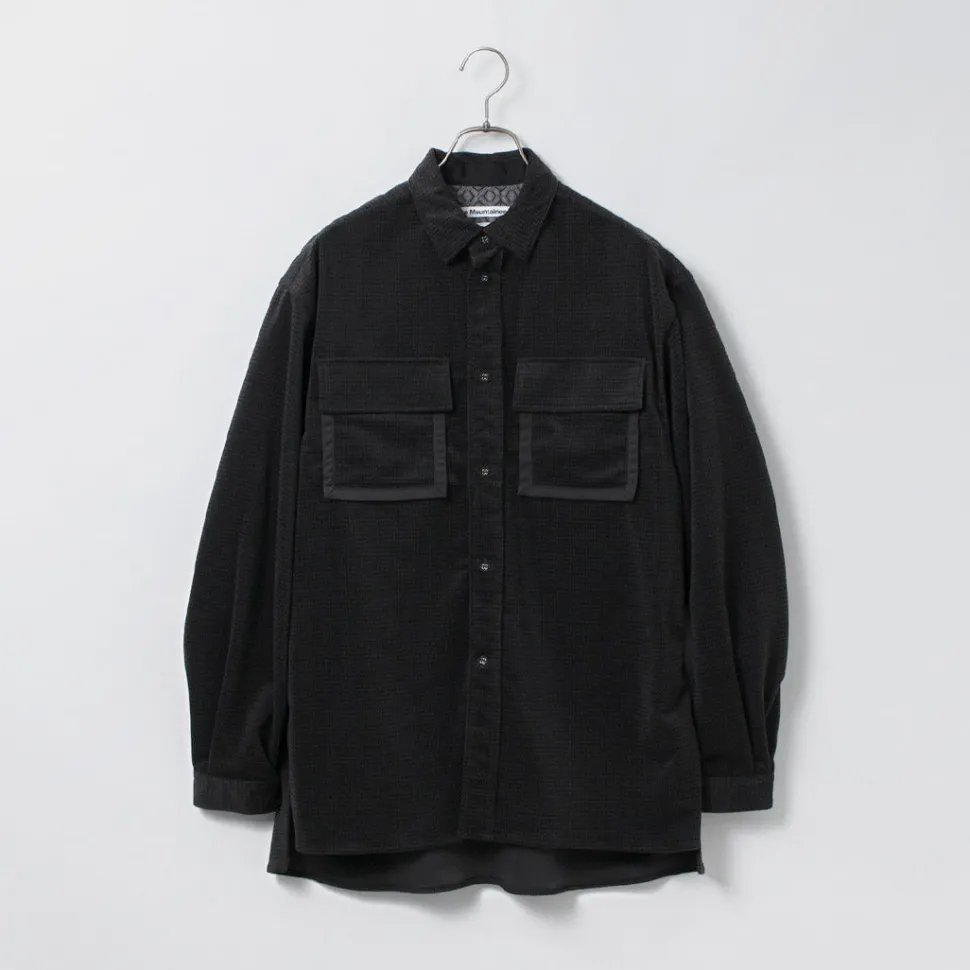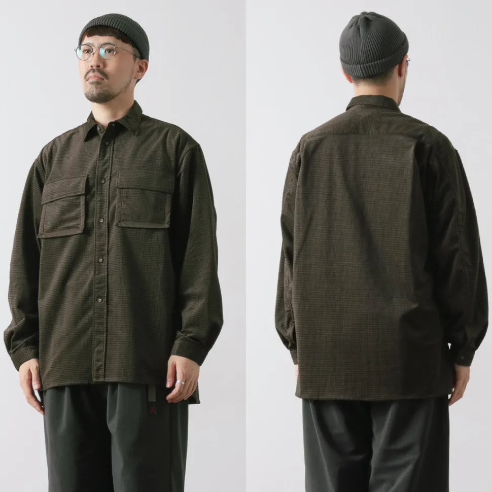This regular-collar shirt is made of tricot fabric with a corduroy-like appearance and is full of seasonal mood.