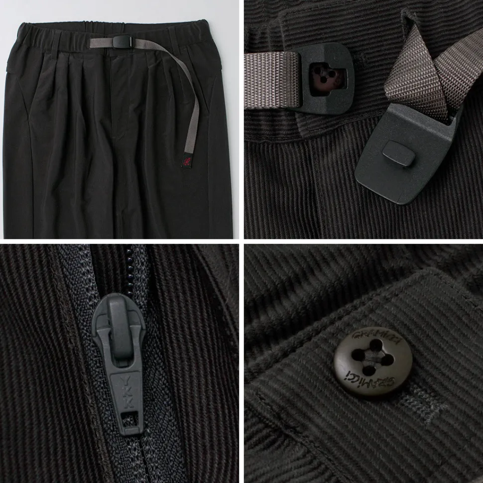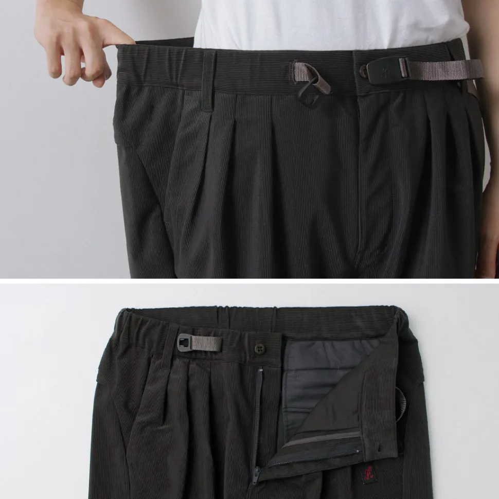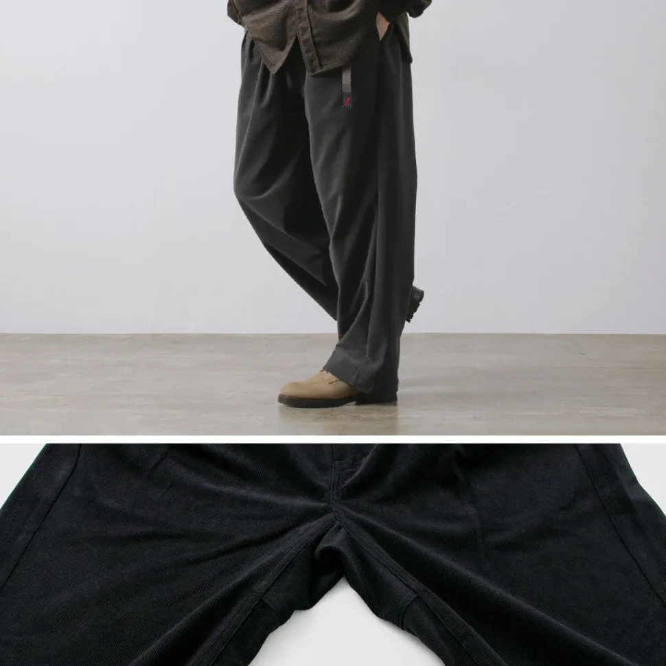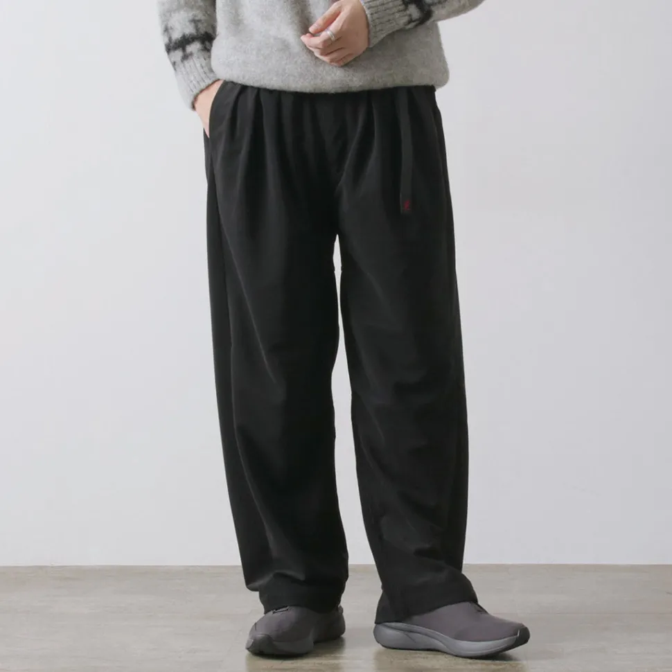 The tricot fabric gives the pants a corduroy-like appearance, and the three-tuck design gives them a roomy feel that is sure to become addictive once you try them on.