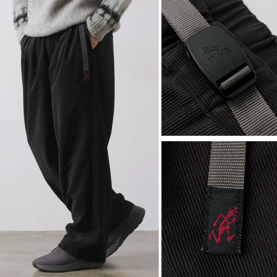 The waistband features elastic shirring for a snug fit, along with a one-handed adjustable webbing belt, a signature Gramicci detail. The belt’s end showcases the recognizable red Running Man logo, adding a stylish touch to the design.