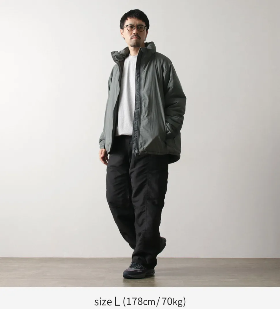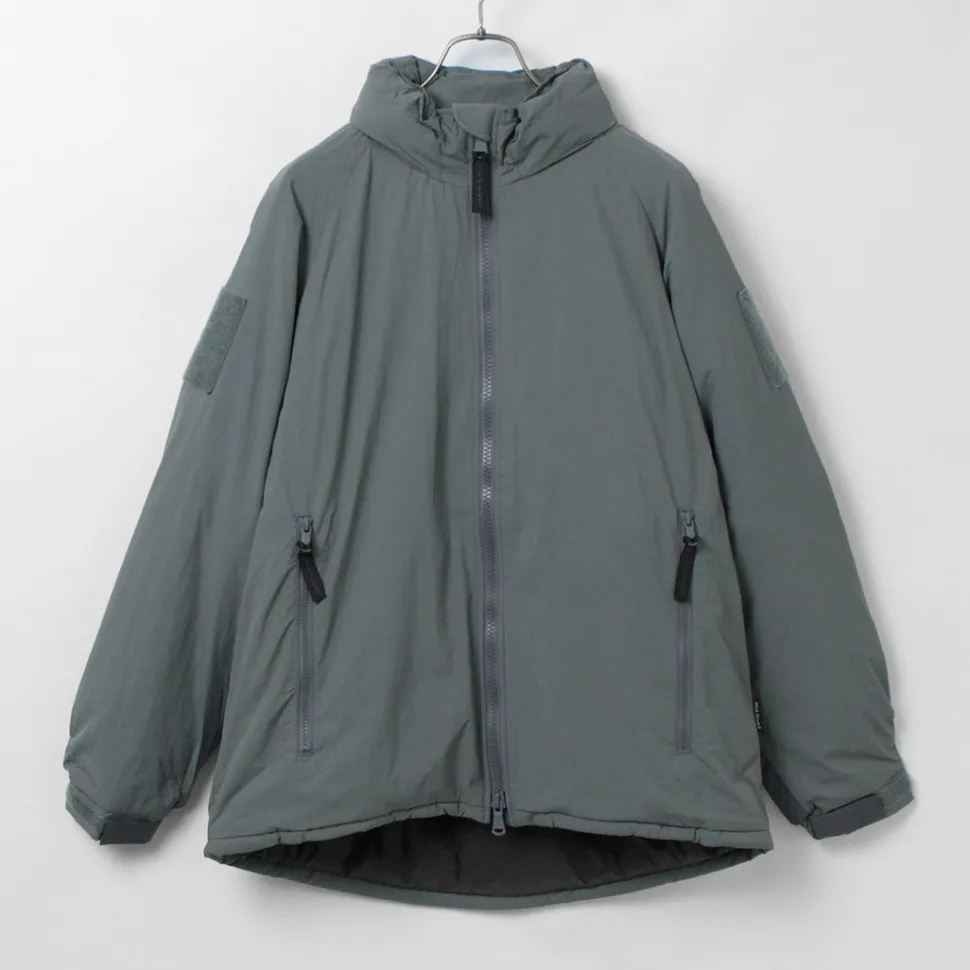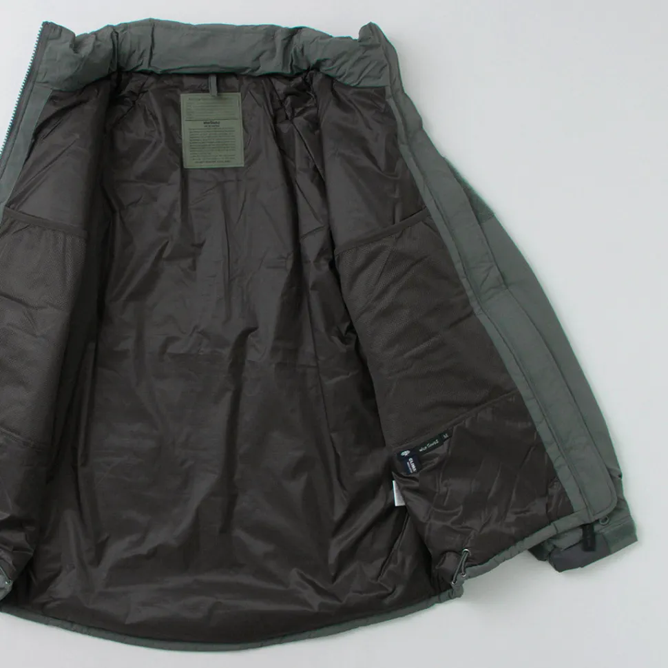 In addition to a design and size that are closer to the original ECWCS LEVEL7 HAPPY SUITS, this model has a regulated amount of padding. It uses a matte nylon fabric with a natural wrinkled texture and subdued sheen, giving it a calm, mature impression.