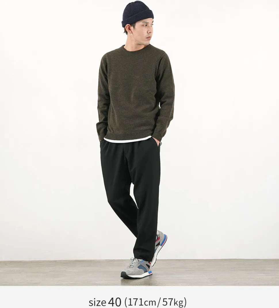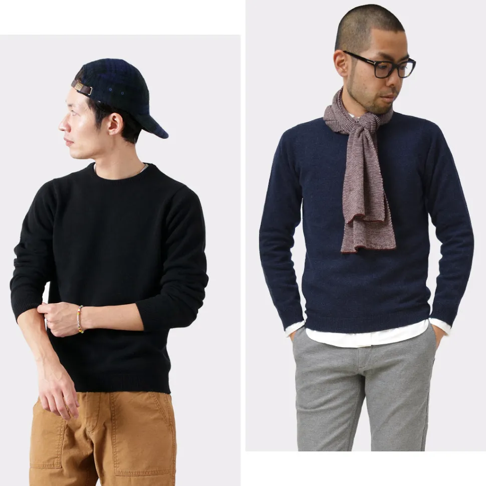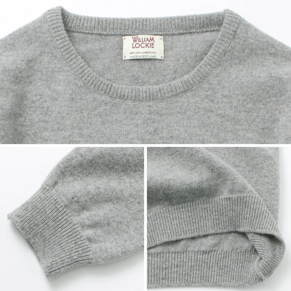 This crew-neck knit is made of 100% lamb’s wool by long-established knitwear manufacturer WILLIAM LOCKIE. Knitted with lamb’s wool, the knit is extremely soft and has a high-quality, elegant look. The high quality combined with the basic design has been loved for many years.